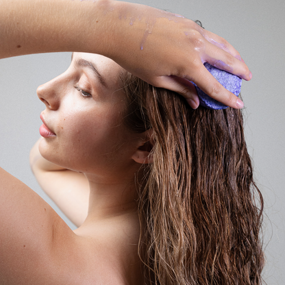 Apply Shampoo Bar: Gently rub the shampoo bar directly onto your hair from scalp to ends in a combing motion.