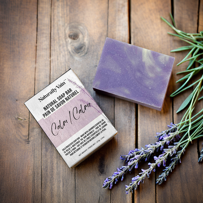 Surround yourself with the soothing essence of lavender with our Calm Natural Soap Bar. Allow this calming soap to gently nourish your skin with its rich blend of moisturizing oils and butters, making it the perfect choice for a relaxing end to a busy day.