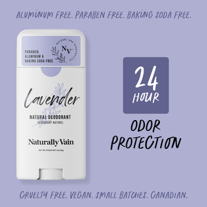 Breathe in the refreshing floral scent of Lavender, a natural deodorant crafted with safe, non-toxic ingredients. Lavender essential oil soothes and protects delicate skin while tea tree oil enhances freshness and odor control.