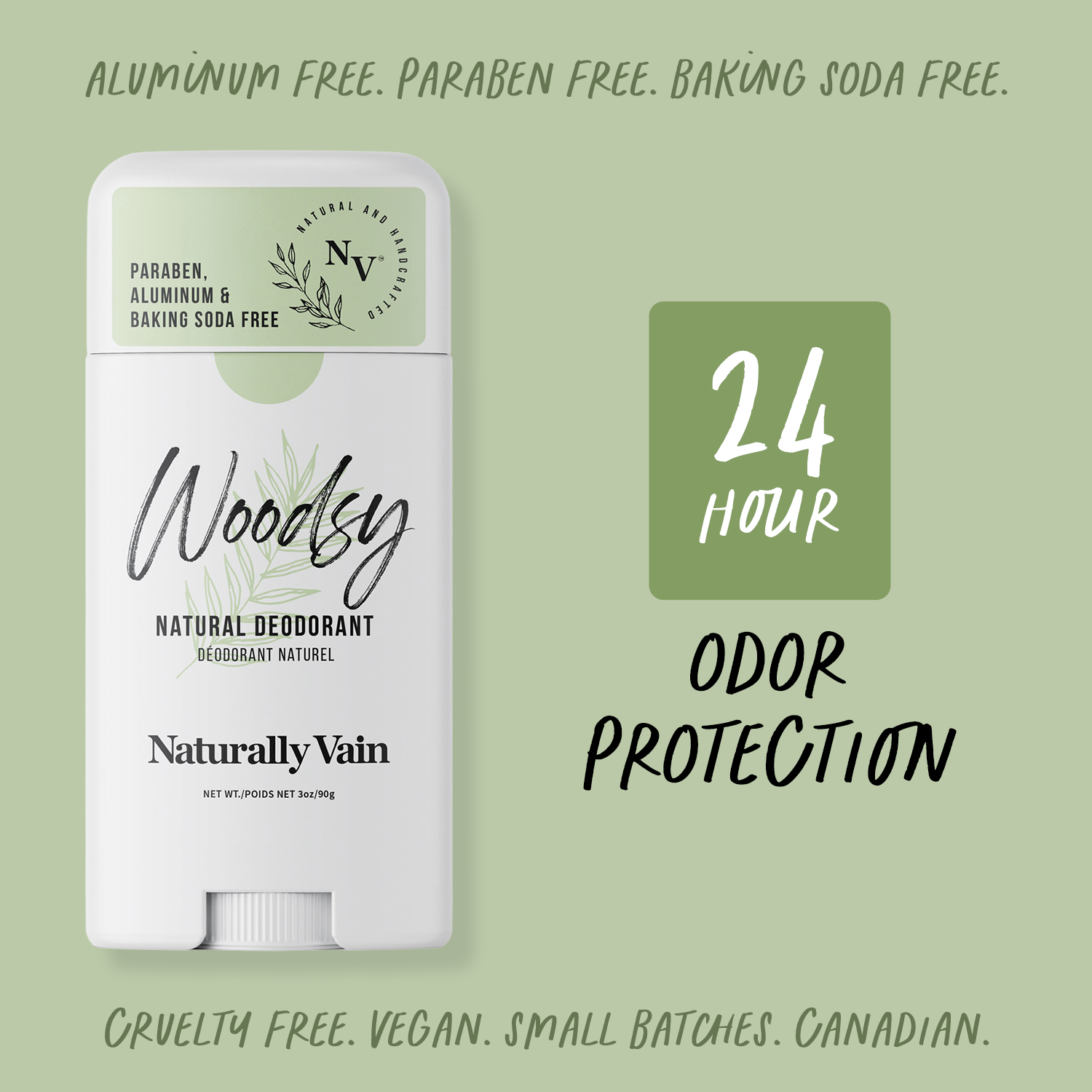 Stay grounded and fresh with Woodsy, a clean, natural deodorant crafted for sensitive skin. This refreshing formula locks in moisture, neutralizes odor, and offers antibacterial protection—without any harsh chemicals. Aluminum free. Baking soda free. Paraben free. This product contains 3 oz.