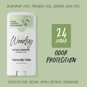 Crafted with safe, non-toxic ingredients, Woodsy helps block moisture and odor naturally while keeping your underarms soft, smooth, and fresh. Phthalate free. Paraben free. Ideal for daily use on even the most sensitive skin.